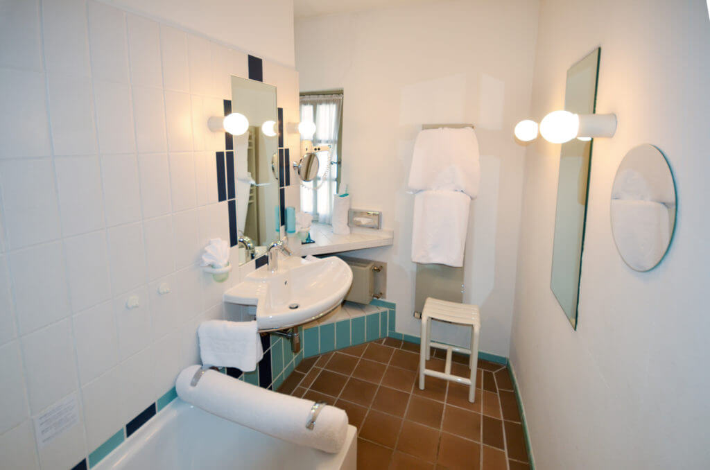 - Teilweise Whirlpool im Bad: Die Badezimmer sind zum Teil mit Whirlwannen versehen; Gäste sollten bei der Buchung eine Suite mit Whirlpool wählen.
