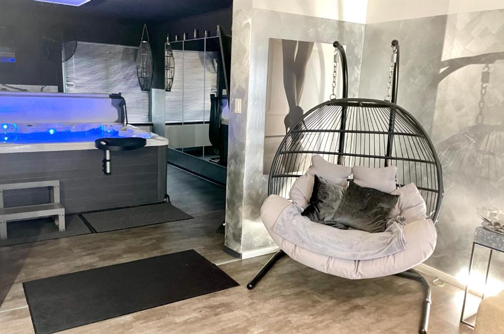 - Luxuriöser Whirlpool im Wohnzimmer mit TV‑Lift
