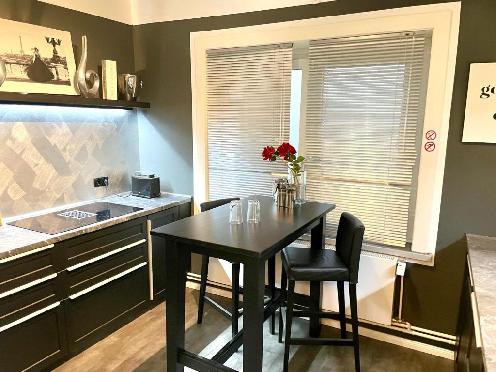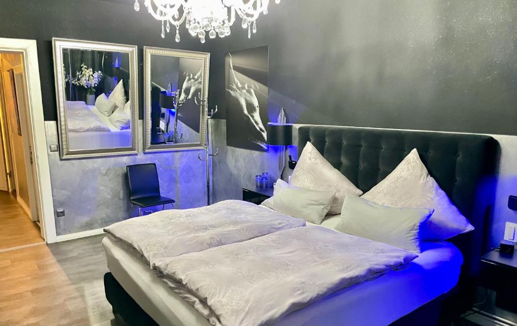 In dieser liebevoll gestalteten Suite im Stadtteil Hohenfelde genießen Paare ein Loft auf zwei Ebenen mit Schlafzimmer, großem Wohnbereich und Küche. Der Whirlpool befindet sich im Wohnbereich und ist mit einem elektrisch verstellbaren 75‑Zoll‑Fernseher kombiniert – ideal für Filmabende. Ein romantisches Lichtkonzept sorgt für gemütliche Stimmung.