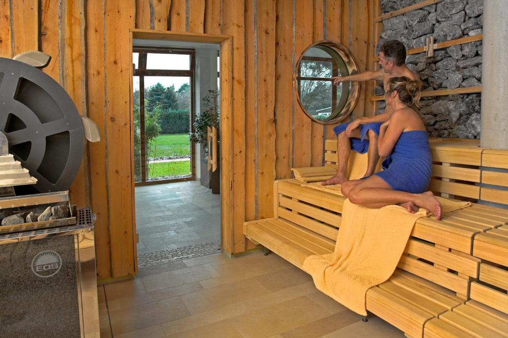 - Wellness: Whirlpool auf der Terrasse mit Blick ins Grüne; E‑Bikes inklusive; Sauna im Fass.